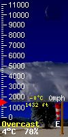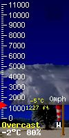 Εμφάνιση βροχής κατά τη διάρκεια του απογεύματος. Μέγιστη θερμοκρασία 4C. Άνεμοι ασθενείς και μεταβλητοί. Πιθ. βροχής 60%. |