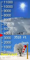 Εμφάνιση βροχής κατά τη διάρκεια του απογεύματος. Μέγιστη θερμοκρασία 4C. Άνεμοι ασθενείς και μεταβλητοί. Πιθ. βροχής 80%. |
